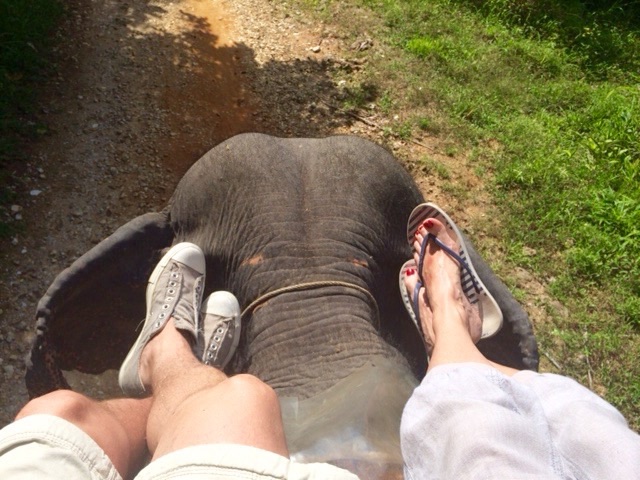 Noch drei Tage haben wir hier in Thailand vor uns und an jedem Tag ist auch etwas geplant. Am Samstag ist packen angesagt, am Freitag hat mich Nadine zu einer Spa-Behandlung angemeldet und heute geht es für uns beide auf Safari. Nach dem obligatorischen Frühstück werden wir um 9 Uhr in der Lobby abgeholt. Mit einem Kleinbus fahren wir etwa 20 Minuten zu einem Elefantencamp im Dschungel. Hoch oben auf dem Rücken des Rüsseltiers sitzen wir beide nebeneinander und wackeln etwa eine Stunde durch den Wald. Dazwischen dürfen wir einen wunderschönen Wasserfall ansehen und auch fotografieren. Vermutlich sind die Hälfte meiner Fotos auf meiner Nikon Bilder von wundervollen Wasserfällen. Unserem Elefanten kaufen wir am Schluss einen Bund Bananen, denn er hat uns ja wieder sicher zurück gebracht.